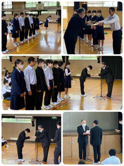 今日はまず、生徒会と学級委員の認証式です。生徒会役員全員と学級委員の代表に認証状が手渡されました。続いて、校長先生の講話です。