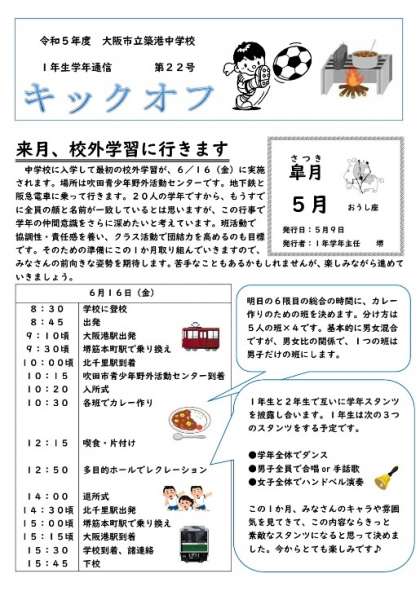 1年生学年通信 第22号(来月、校外学習に行きます)