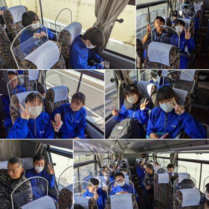 バスの中は生徒が事前に選曲して、早浪先生が曲順を組んだ音楽が流れています!