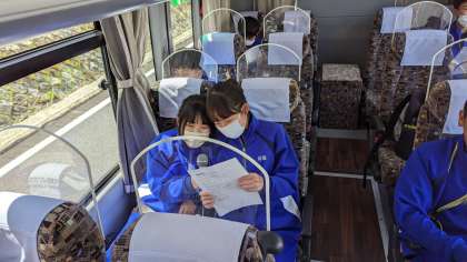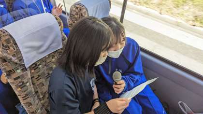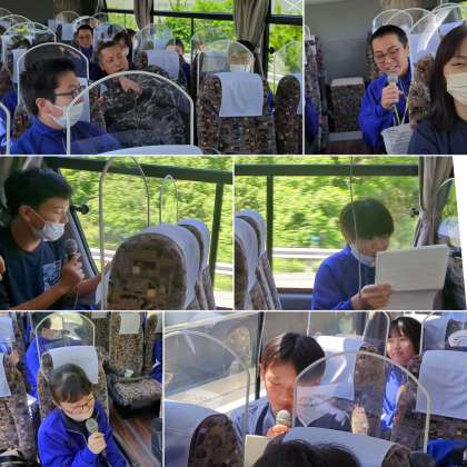 バスの中では、カラオケが始まっています!