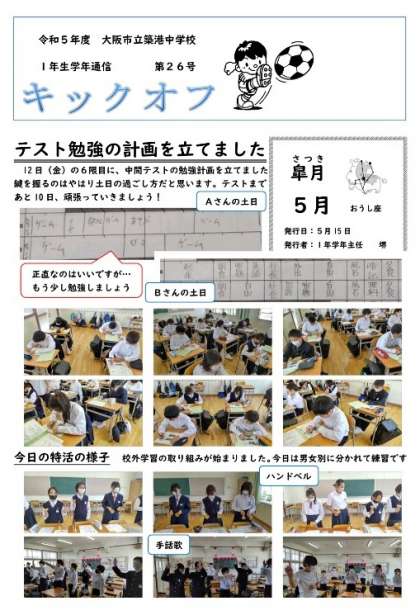 1年生学年通信 第26号(テスト勉強の計画を立てました)