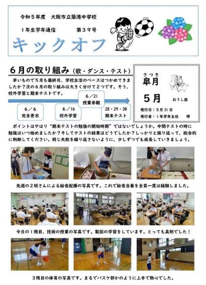 1年生学年通信 第39号 6月の取り組み(歌・ダンス・テスト)