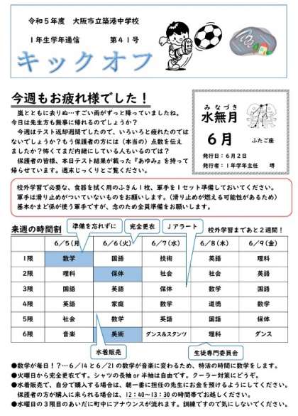 1年生学年通信 第41号(今週もお疲れさまでした!)