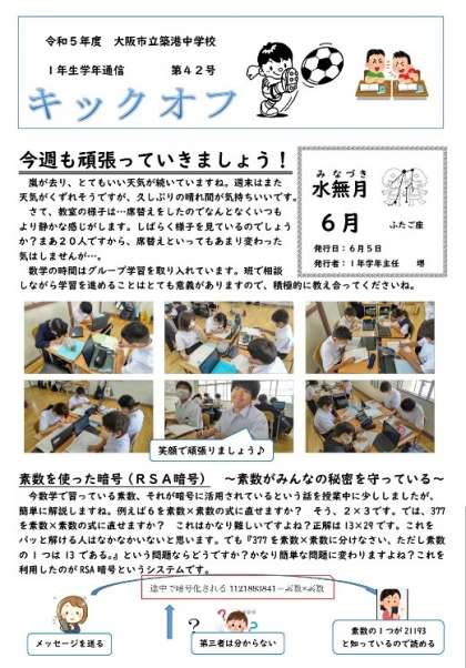数学の時間はグループ学習を取り入れています。班で相談しながら学習を進めることはとても意義がありますので、積極的に教え合ってくださいね。