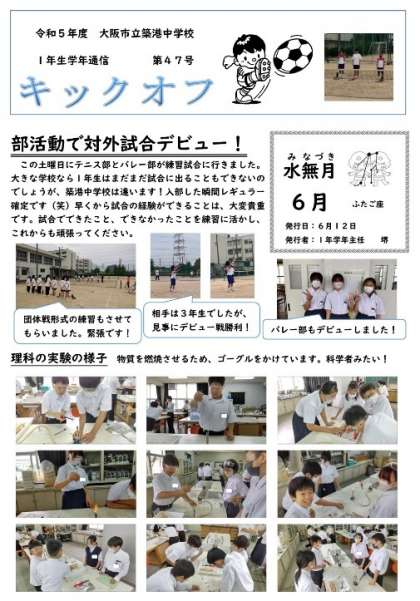 1年生学年通信 第47号(部活動で対外試合デビュー!)