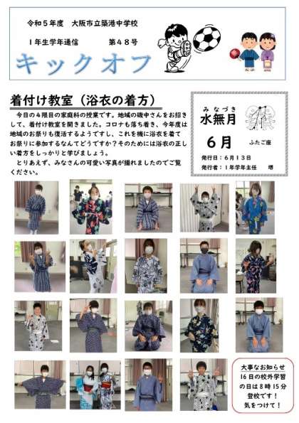 1年生学年通信 第48号(着付け教室(浴衣の着方))