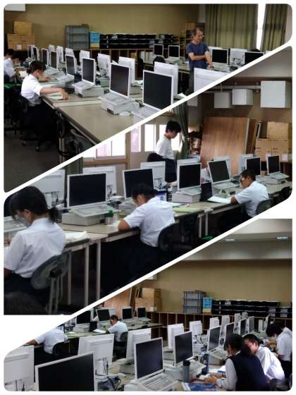 パソコン教室では、テスト前の放課後学習室でたくさんの生徒が自習しています。