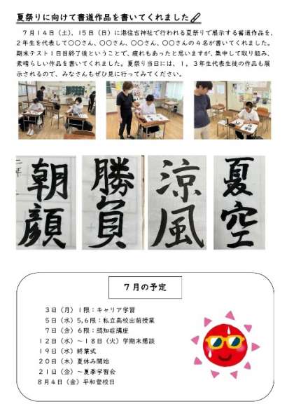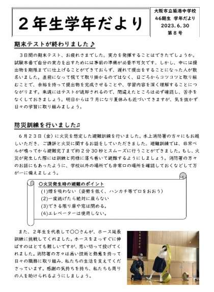 2年生 学年だより 第8号(期末テストが終わりました) 6月30日(金)発行