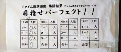 昨日からスタートしたチャイム着席運動、今年は初日からパーフェクト!