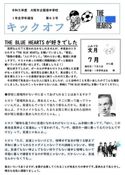 1年生学年通信 第63号(THE BLUE HEARTS が好きでした)