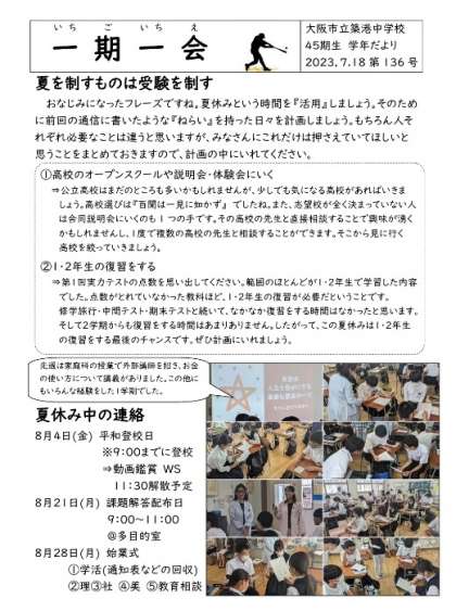 3年学年だより 45期生135号(7・18)(夏を制すものは受験を制す)
