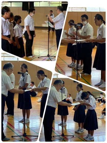 吹奏楽部とテニス部と陸上競技部の賞状伝達がありました。