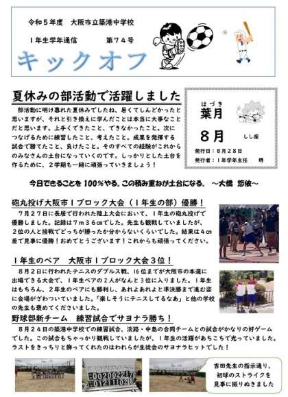 1年生学年通信 第74号(夏休みの部活動で活躍しました)