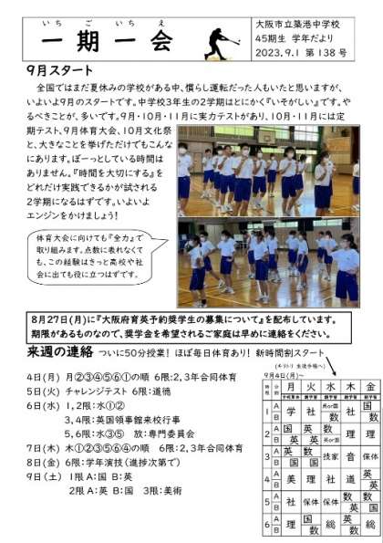 3年学年だより 45期生138号(9・1)(9月スタート)