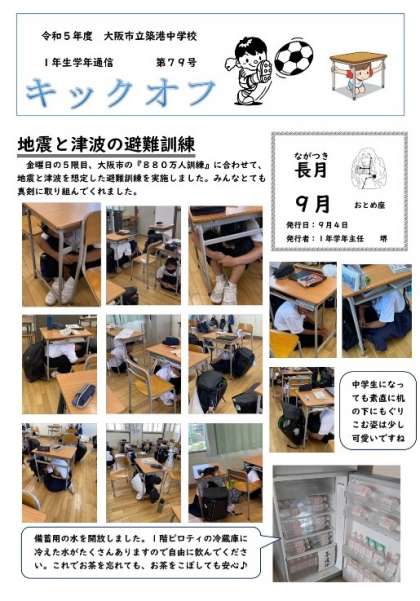 1年生学年通信 第79号(地震と津波の避難訓練)
