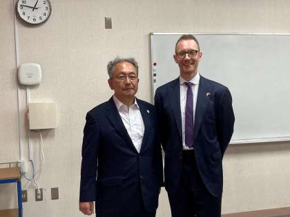 このたび、大阪市立中学校を代表して本校で、G7 大阪・堺貿易大臣会合に関する特別授業が開催されることになりました。本校へは、在大阪英国総領事館で大阪関西万博を担当されているマシュー・エリス様にご講演をいただきました。