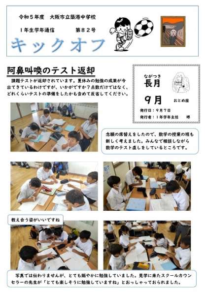 1年学年通信 第82号(阿鼻叫喚のテスト返却)