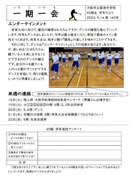 3年学年だより 45期生140号(9・14)(エンターテインメント)