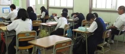 習を行っています。テスト範囲の基本的な問題を1教科15分でテスト形式で取り組みま