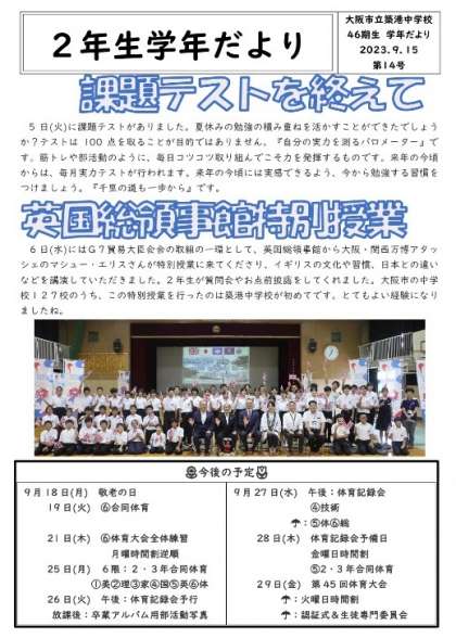 2年生 学年だより14(9.9) 第14号(課題テストを終えて・英国総領事館特別授業)