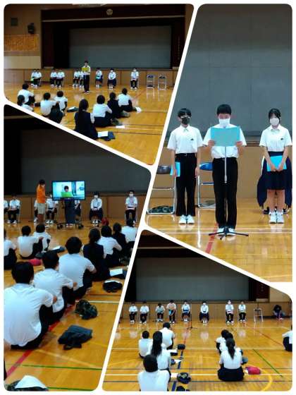 9月22日(金)6時間目に、体育館で後期生徒会役員選挙の立会演説会を実施しました。演説会の後、各教室で選挙を実施し、全員が信任されました。