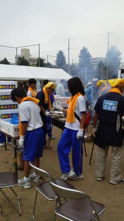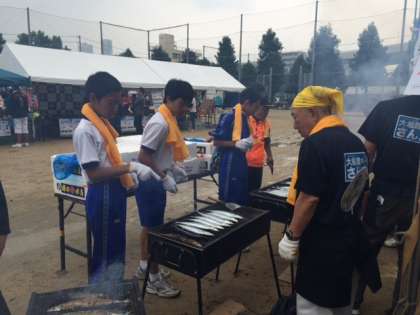 10月11日港区民まつりで行われた港区老人クラブ連合会主催の”さんま祭り”に本校から7名が、お手伝いで参加させていただきました。