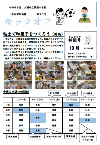1年生学年通信 第97号(粘土で和菓子をつくろう 美術)