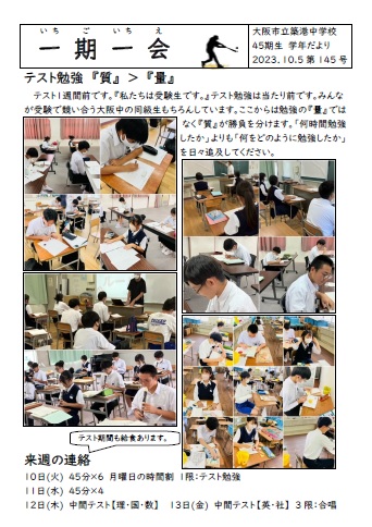 3年学年だより 45期生145号(10・5)(テスト勉強 『質』>『量』)