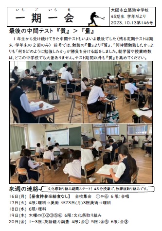 3年学年だより 45期生146号(10・13)(最後の中間テスト 『質』 > 『量』)