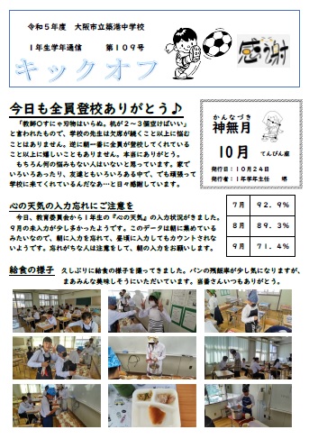 1年生学年通信 第109号(今日も全員登校ありがとう)