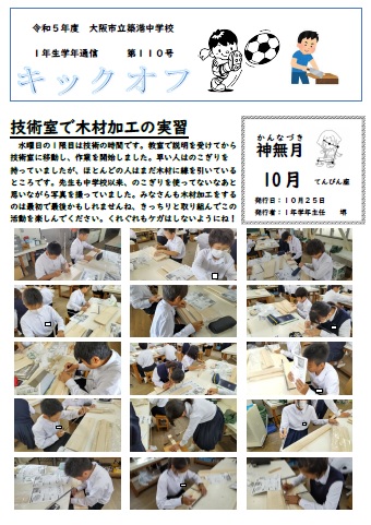 1年生学年通信 第110号(技術室で木工加工の実習)