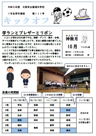 1年生学年通信 第111号(学ランとブレザーとリボン)