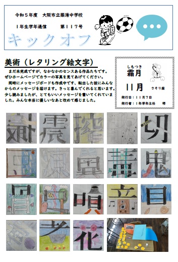 1年生学年通信 第117号(美術(レタリング絵文字))