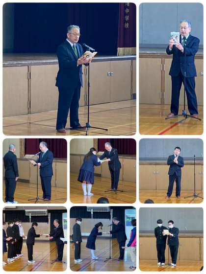 今朝はまず、表彰状の伝達です。赤い羽根共同募金・英検合格証・税の作文の3件の伝達がありました。