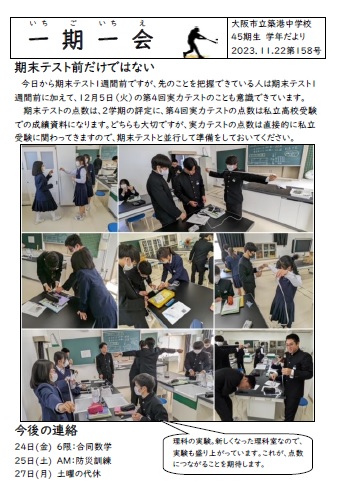 3年学年だより 45期生158号(11・22)(期末テスト前だけではない)