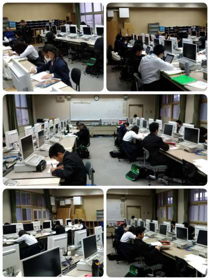 今日は期末テスト前の放課後学習会を、パソコン教室を開放して実施しています。