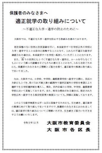 大阪市では、不適正な入学・通学を防止する取組みを進めております。