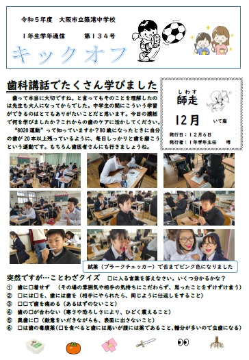 1年生学年通信 第134号(歯科講話でたくさん学びました)