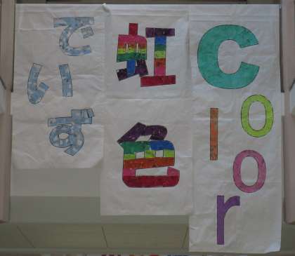塗って貼り絵にしています。文化祭委員会垂れ幕係の制作です。「Color」は2年生で