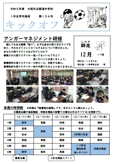 1年生学年通信 第136号(アンガーマネジメント研修)