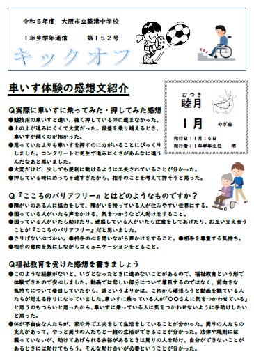 1年生学年通信 第152号(車いす体験の感想文紹介)
