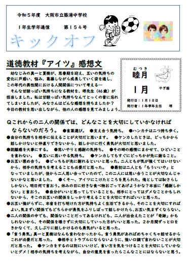 1年生学年通信 第154号(道徳教材『アイツ』感想文)