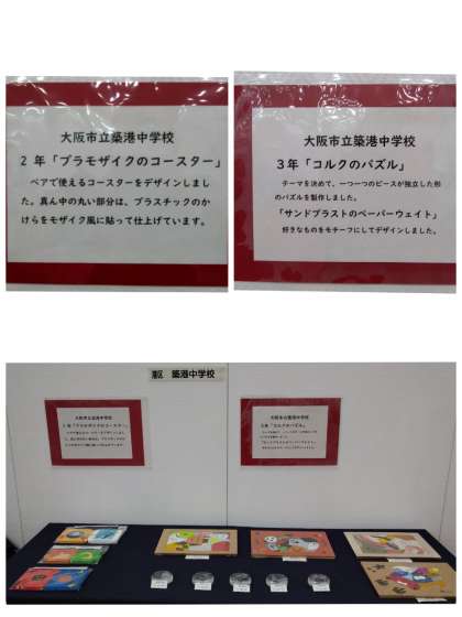 第45回大阪市立中学校造形展・第64回近畿中学校美術展に築港中学校の生徒の作品が展示されていました。