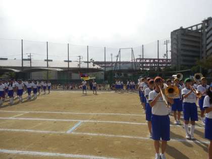 全員がトラック内に入場するまで足踏み行進は続きます。