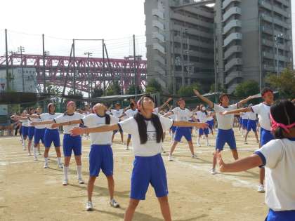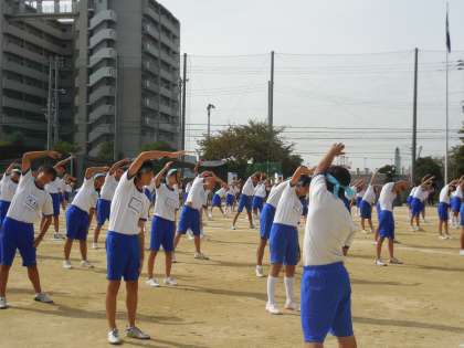 ラジオ体操第一、正確に大きな動きで気持ちよく身体を動かします。