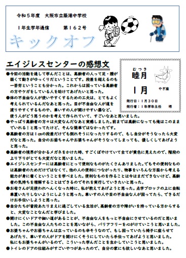 1年生学年通信 第162号(エイジレスセンターの感想文)