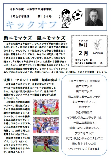 1年生学年通信 第164号(雨ニモマケズ、風ニモマケズ)