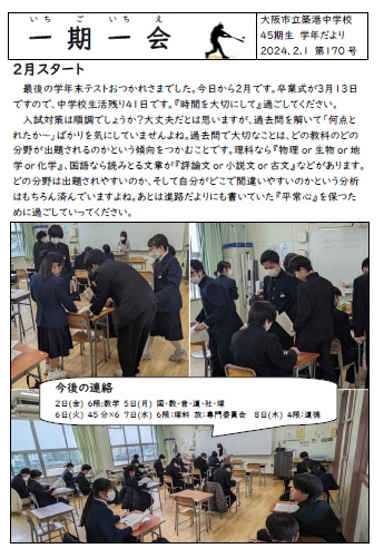 3年学年だより 45期生170号(2・1)(2月スタート)