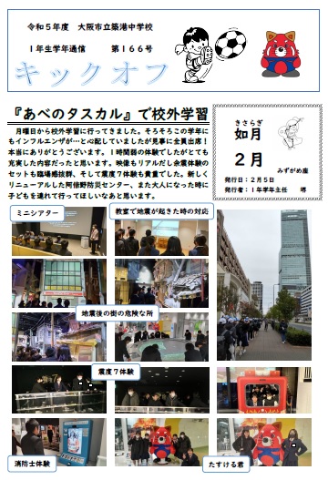 1年生学年通信 第166号(『あべのタスカル』で校外学習)