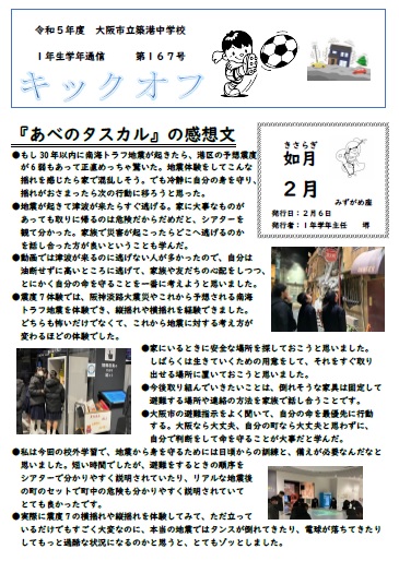 1年生学年通信 第167号(『あべのタスカル』の感想文)